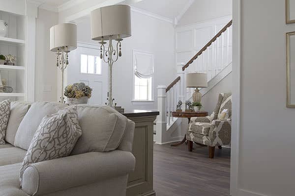 The interior of the house is focused around a large central hallway serving as the main avenue of traffic and entrance area to the adjacent rooms. The hallway flows into a large, wide staircase that provides the main means of egress.